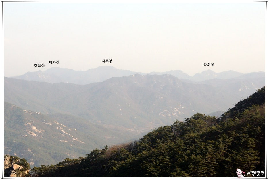 좀 더 오른쪽에는...칠보산과 악휘봉으로 이어지는 능선길도 선명하게 보이고....