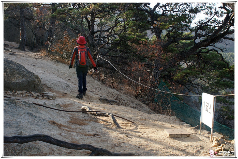 바위들로 인해 깊게 뿌리 내리지 못한 나무의 뿌리를 계단삼아...급하지 않는 걸음으로 천천히 올라갔습니다.