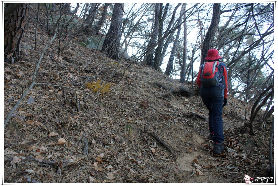 낙엽 수북한 보이지않는 등로를 더듬으며...간간히 보이는 선답자의 반가운 리본 안내를 받으며 한발한발 올라갔네요.