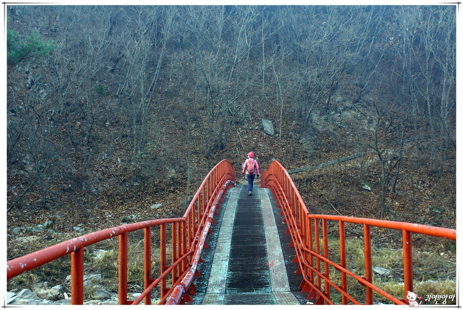 시간이 멈춘 듯 한 화양천 계곡을 내려다 보며...우린 철다리를 건너 도명산을 가르키는 화살표따라 산 속으로 들어갔습니다.