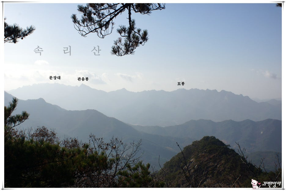드리운 나뭇가지 사이로 속리산의 여러 봉우리와 능선길이...조금은 흐릿한 모습으로 눈에 들어오더군요.