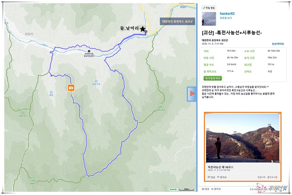 램블러에 찍힌...[괴산] -특전사능선&시루능선- 발자국 지도