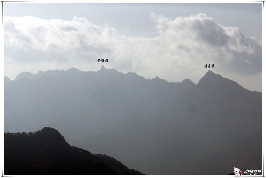 능선 뒤쪽으로 코뿔소바위가 있는 쌀개봉과 낙영산이...오래전 인연을 기억하냐며 살짜기 고개를 내밀어 인사를 하네요.^^