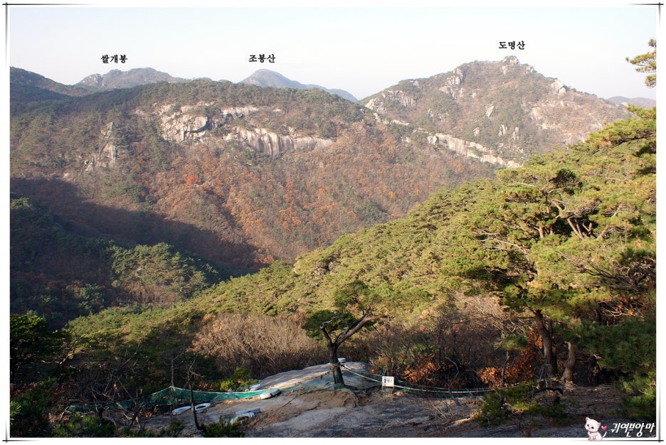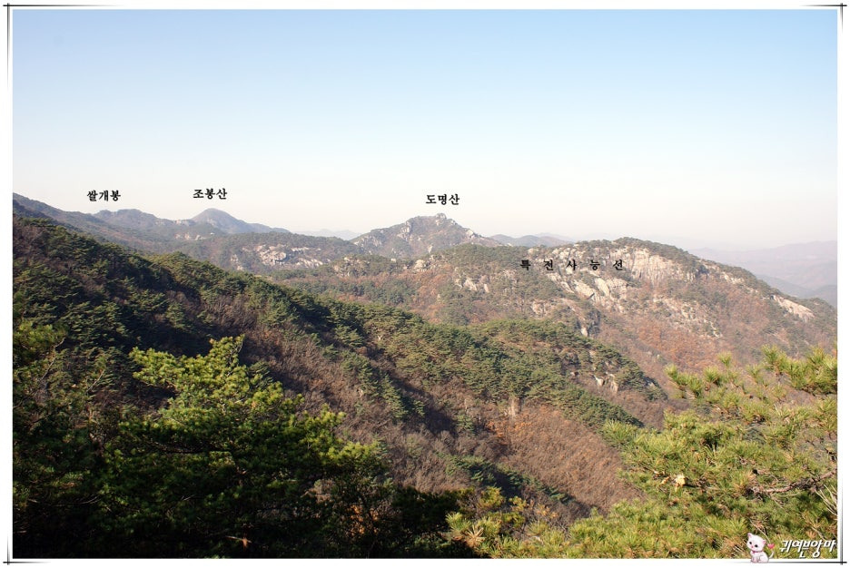 오래전 괴산에 있는 도명산 산행 갔을적에...멋진 바위능선이 건너쪽에 보이길래 찾아봤더니....?