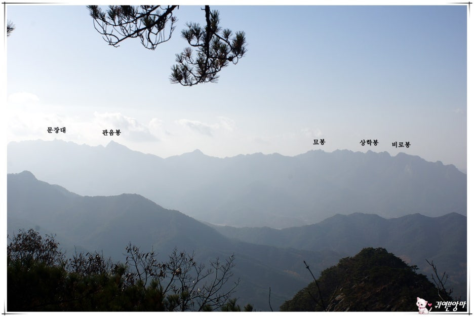 밧줄 쳐 둔 왼쪽 나뭇가지 사이로...배낭풀어 쉬어가기 좋을 것 같은 전망바위들도 여럿 보이네요.