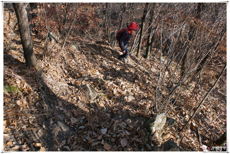 떨어져 수북히 쌓인 낙엽을 등산화로 쓸어내리며...미끄러지지 않으려 조심조심 내려간 아래쪽에서....