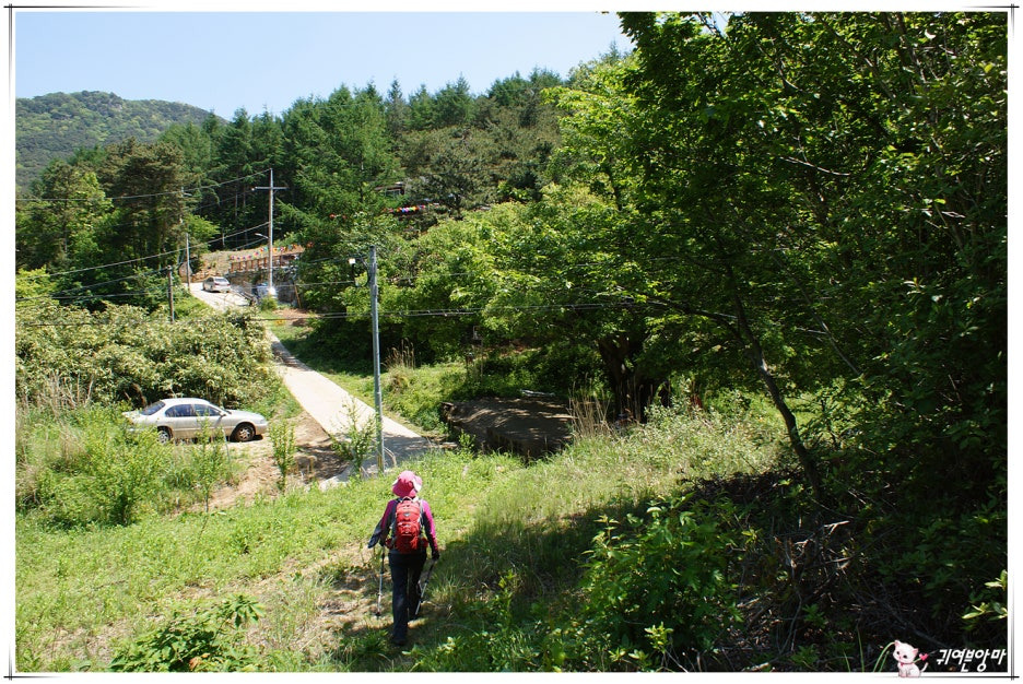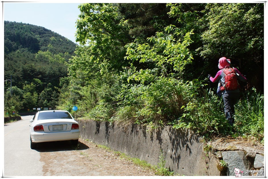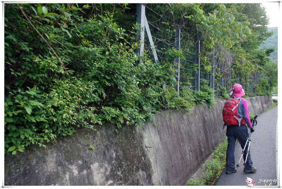 철망 끝나는 틈 사이 숲을 헤치고...간신히 도로에 내려섰네요.