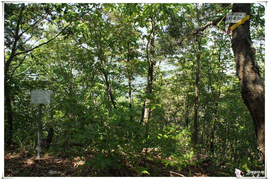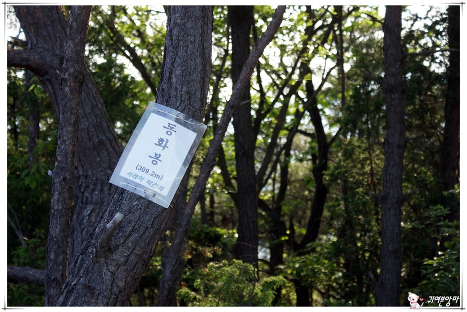 2번째 철탑을 내려서려니...이곳이 동화봉이라 적힌 코팅지가 나무에 걸려있네요.
