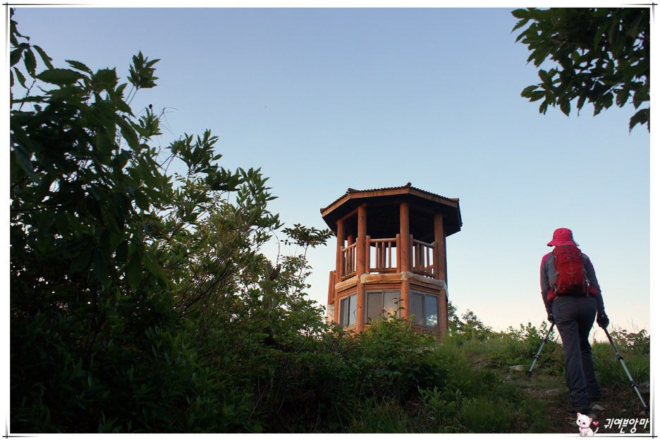 잠시 후...정상 바로 아래쪽에 있는 팔각정자 2층 전망대를 만나네요.