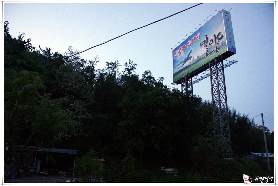 들머리 활성강변가든 건물위로...밀양을 알리는 커다란 입간판이 세워져 있네요.