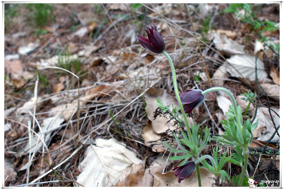 등로 옆 묘지 한 쪽엔...고개숙인 할미꽃도 보이네요.