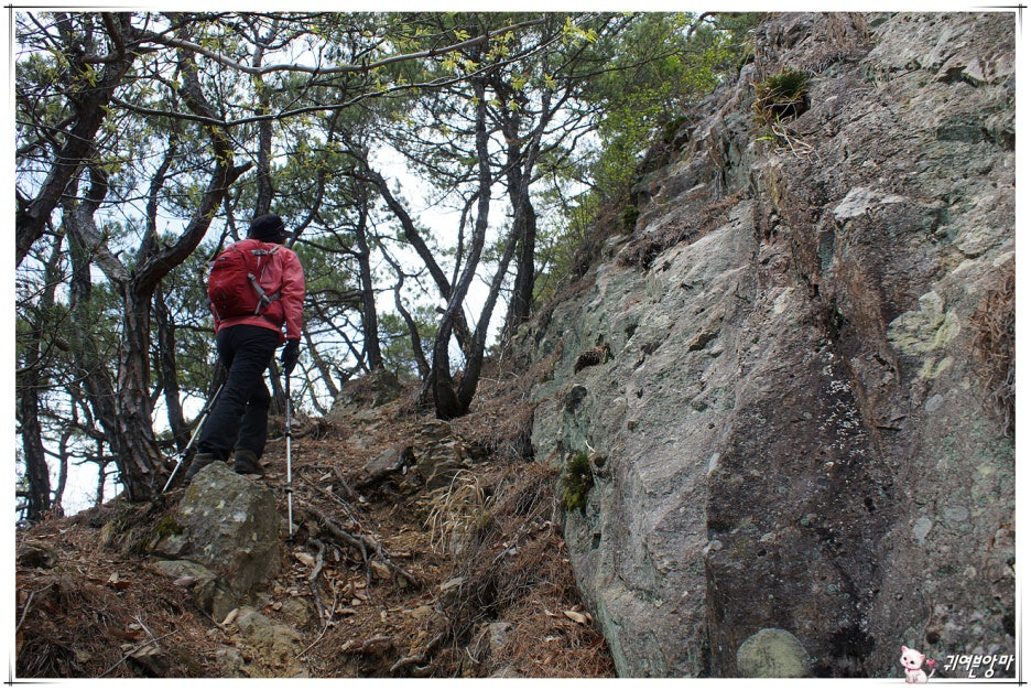 거대한 바위를 돌아서니 등로는...가파른 바위 암봉으로 이어지더군요.