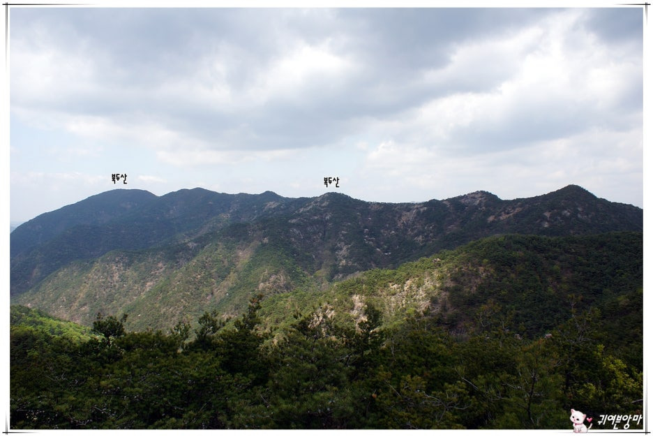 마지막 전망바위에서 뒤돌아 보니...방금 내려온 북두산이 저만치에서 우릴 내려다 보네요.