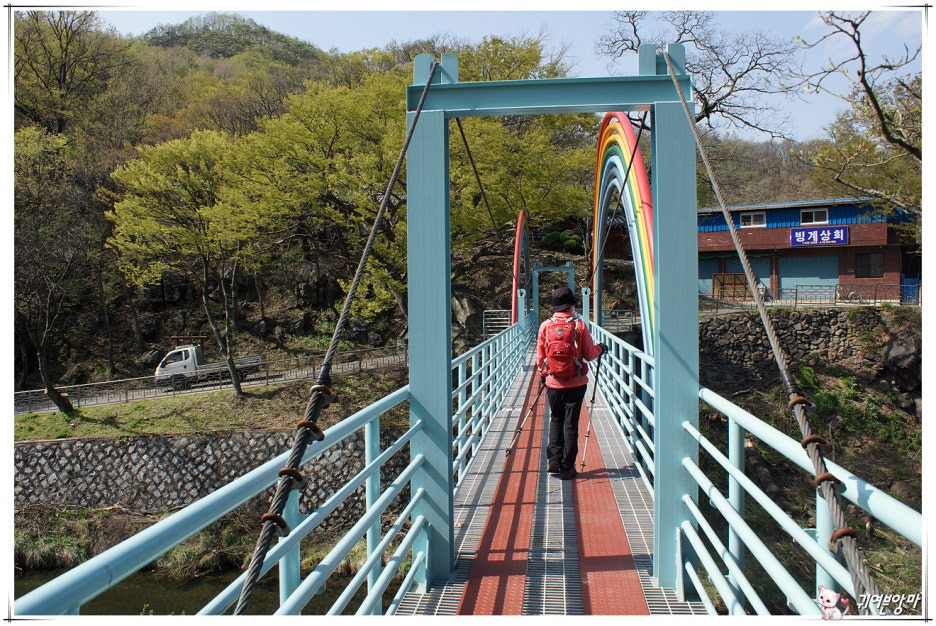 빙계계곡의 명물 무지개다리를 건너면서...오늘의 산행길 마무리합니다.