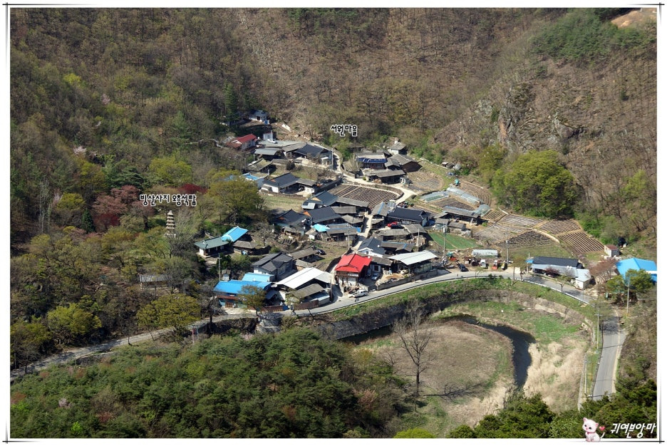 발 아래쪽에...날머리 서원마을이 내려다 보이고....