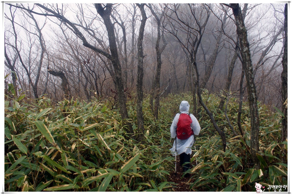 빗물 머금은 산죽길도...빠르게 지나치고....