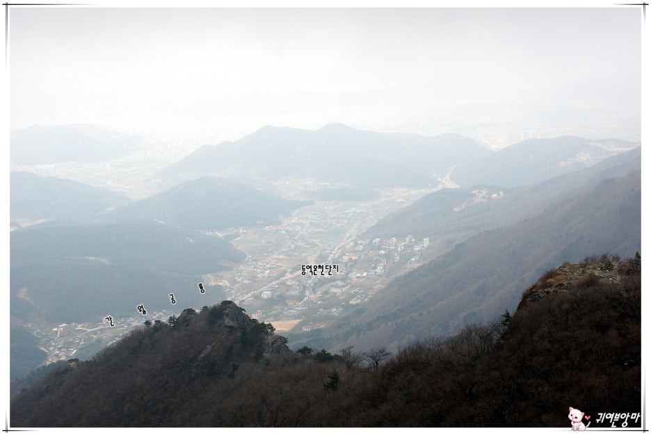 간월공룡 눈길이 머무는 아래쪽엔...등억온천단지가 내려다 보이고....