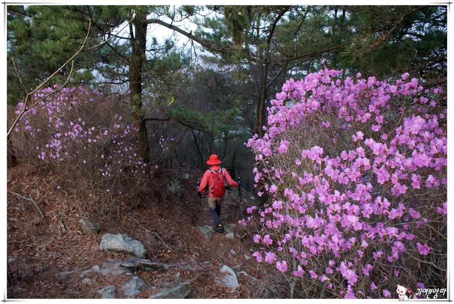 진달래 꽃길 활짝 열어...아쉬운 하산길을 달래주네요.