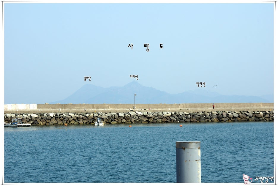 적량 방파제 넘어로 수우도도 보이고...왼쪽으로 사량도가 눈에 들어오네요.