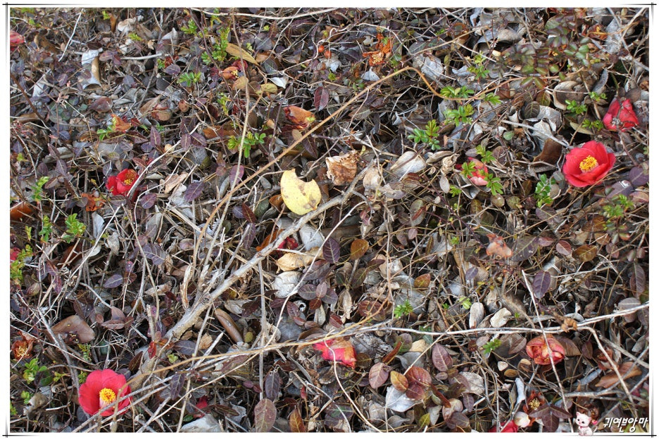 동백꽃은 바닥에 몸을 늬운 채...다가오는 봄이 원망스러운 듯 한숨을 내쉬네요.