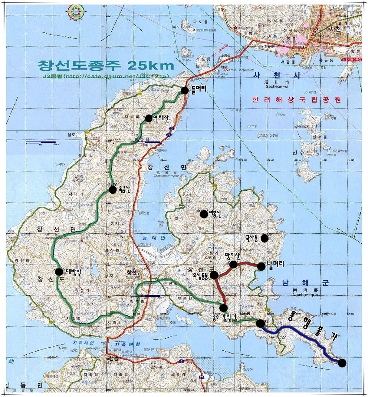 창선도의 작은 봉우리들 몇개를 더 이어볼려고...우린 날머리를 달리하기로 했네요.