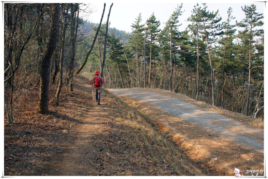 낮은 봉우리 능선 바로 옆쪽에...넓은 임도를 따르도록 만들어 두었고....