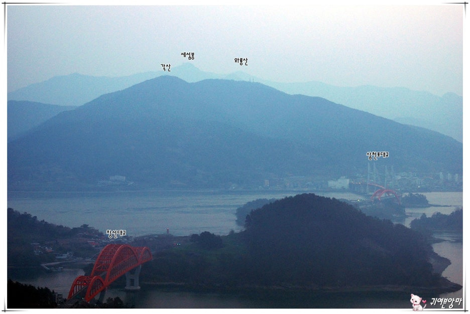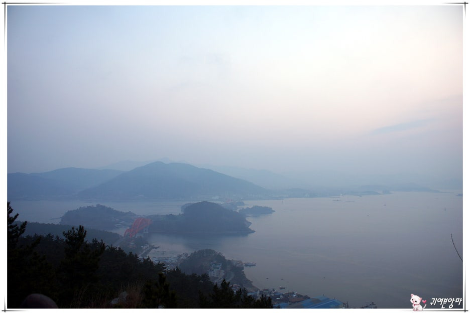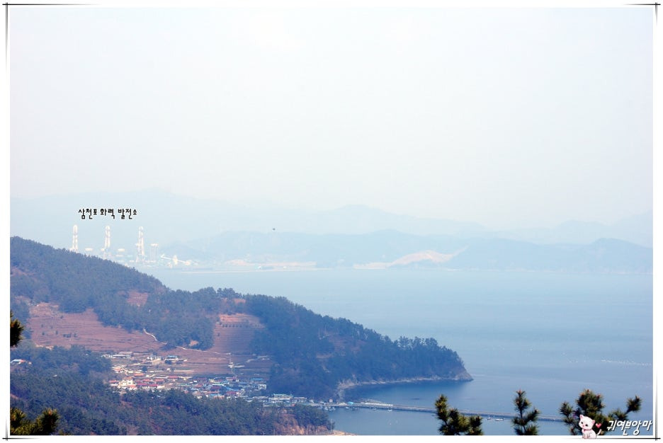 아침보단 조금 더 깨끗하게...삼천포 발전소도 내려다 보이고....