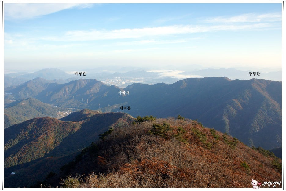 굽이치는 능선 멀리에는...좀 더 시원하게 트인 식장산 능선이 눈에 들어오고....