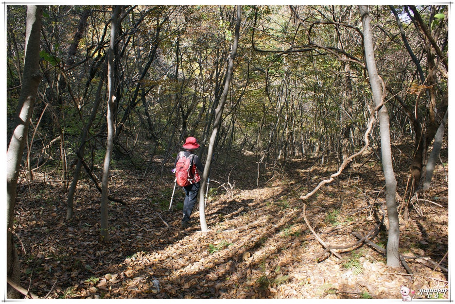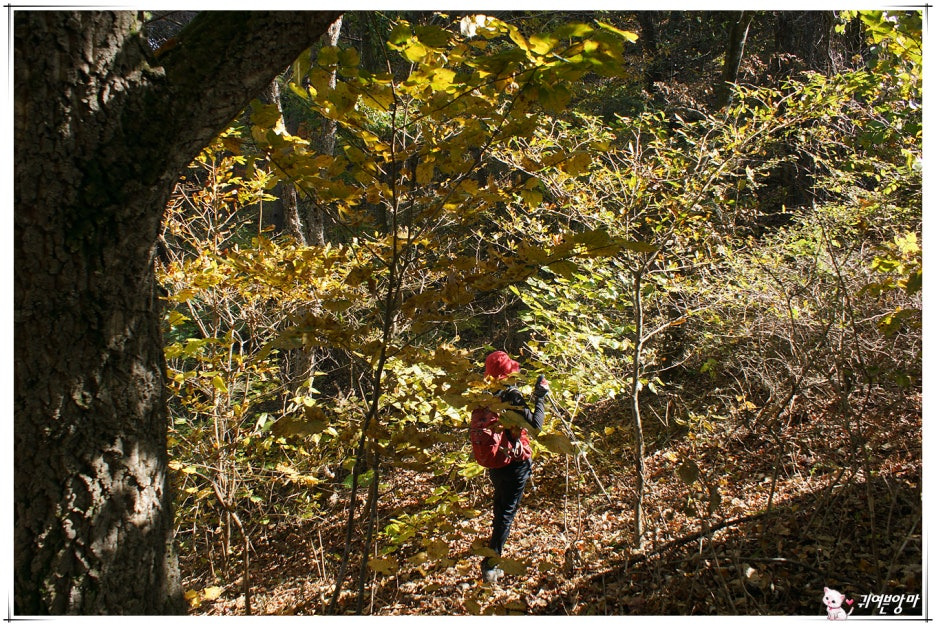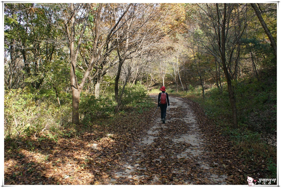 그렇게, 몇 걸음 아래쪽에서 산 허리를 가로지르는 임도를 만난 우린...떨어진 낙엽을 즈려밟고서 깊어가는 가을속으로 걸어들어 갔네요.