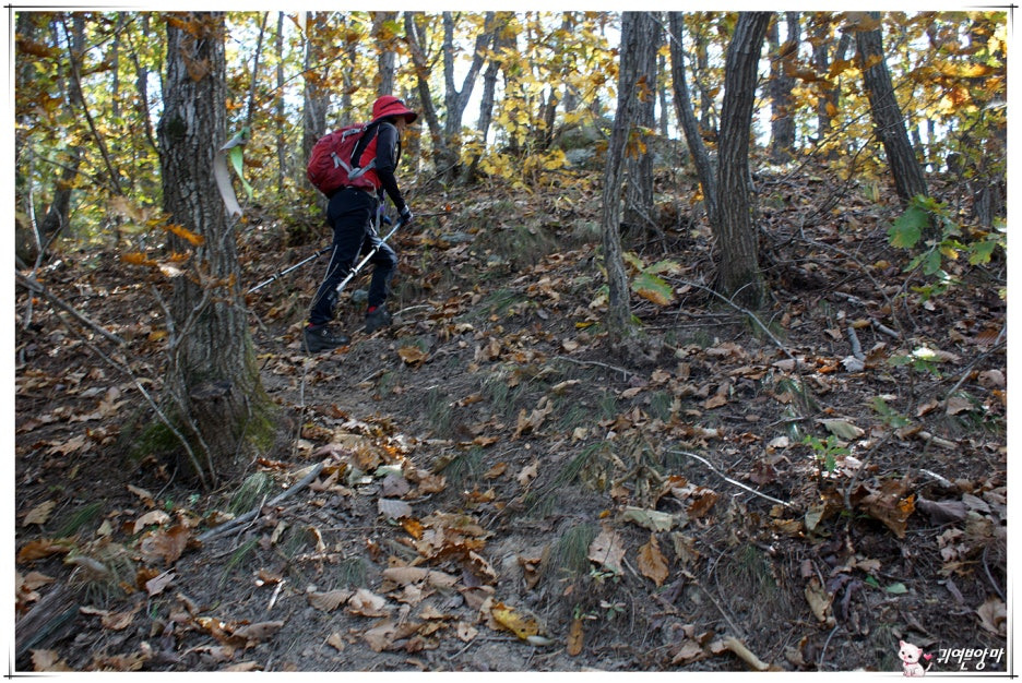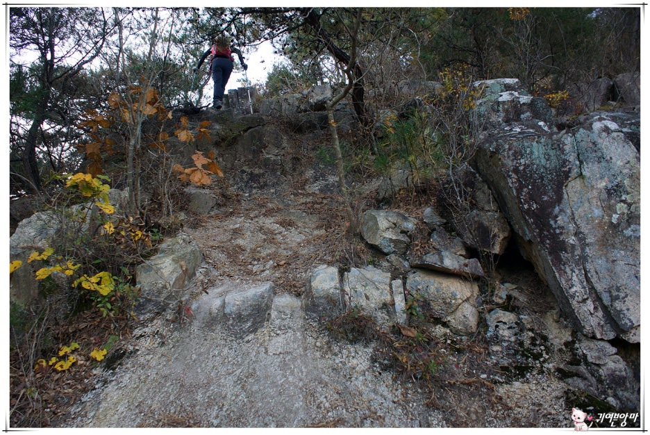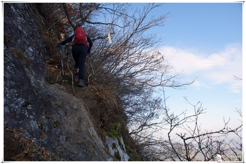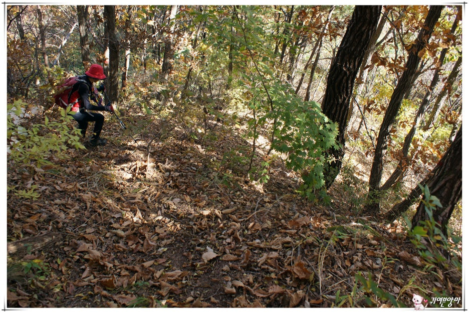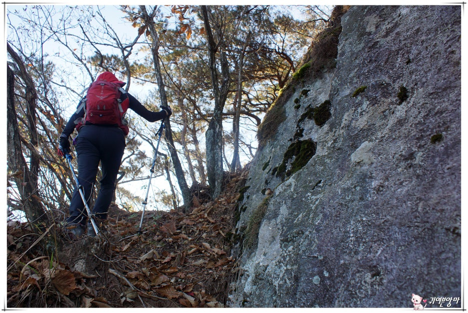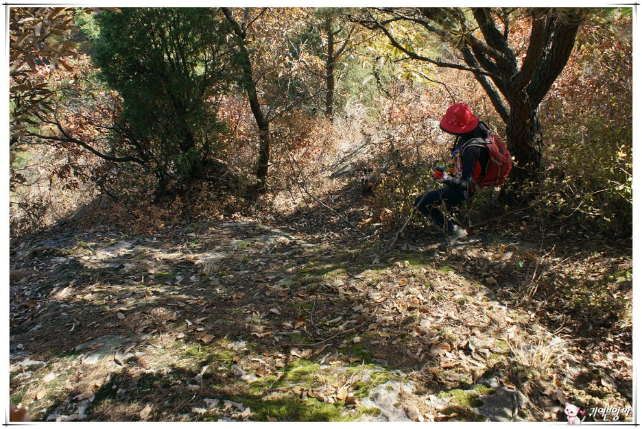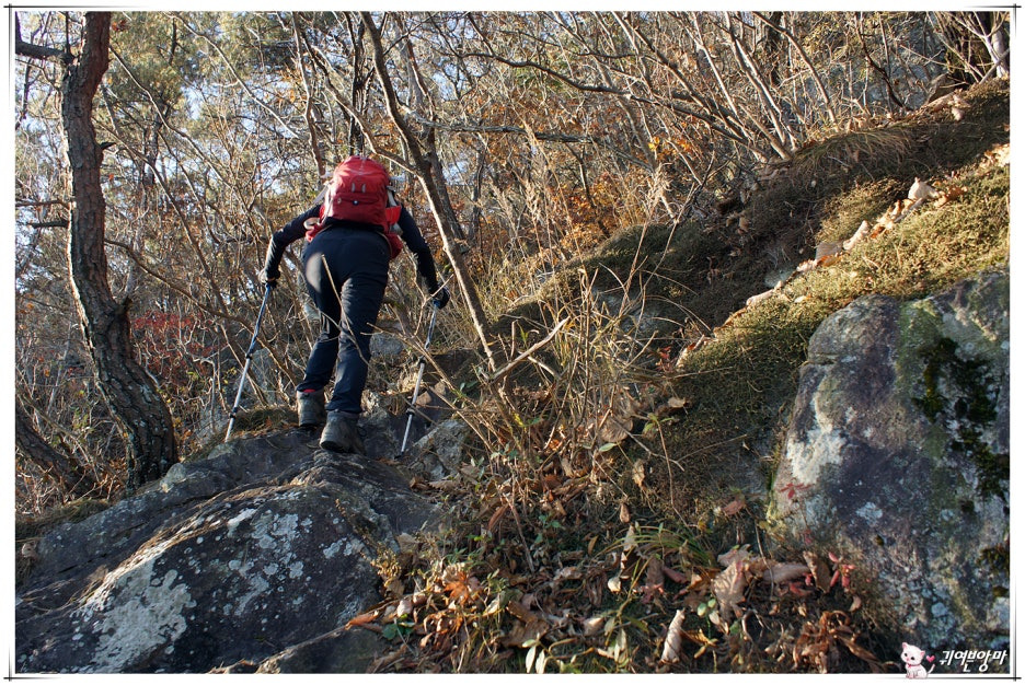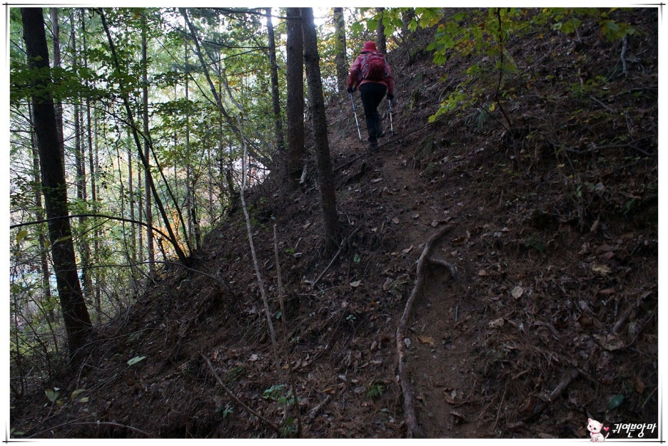 가파른 능선 오름길에 미끄러운 마사토가 깔려있어서...한결 더 조심스런 기억속의 능선 오름길입니다.