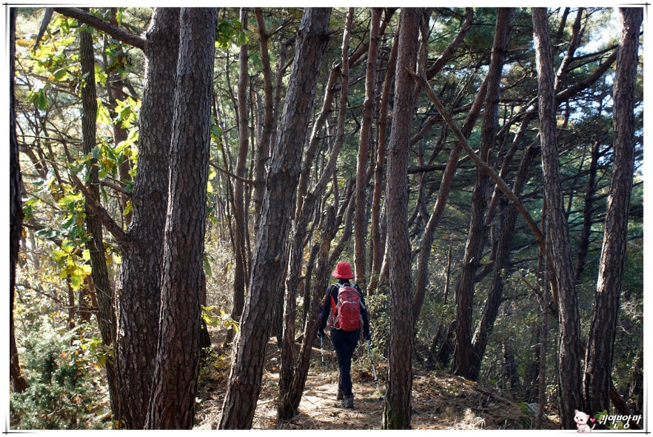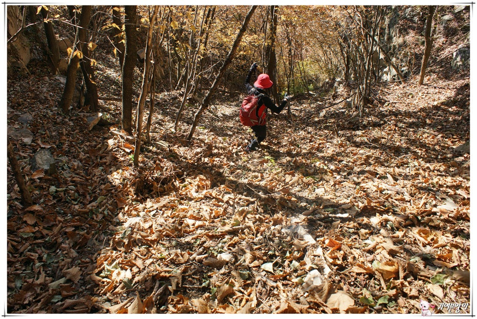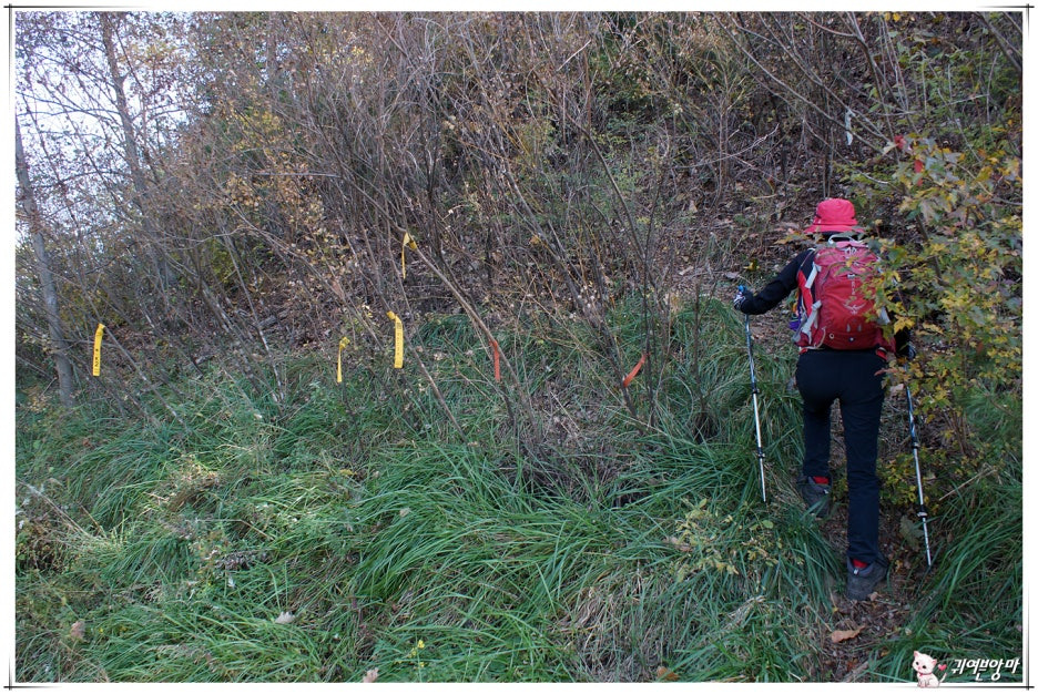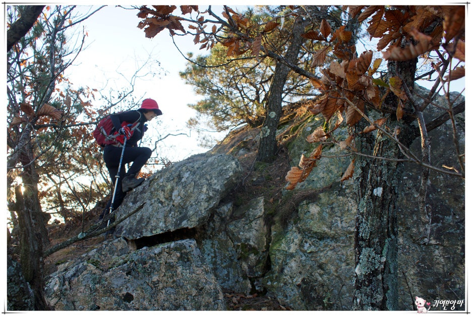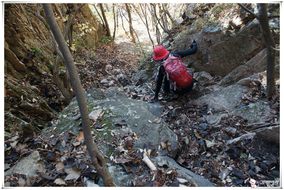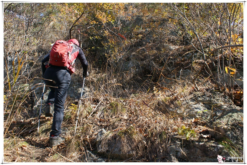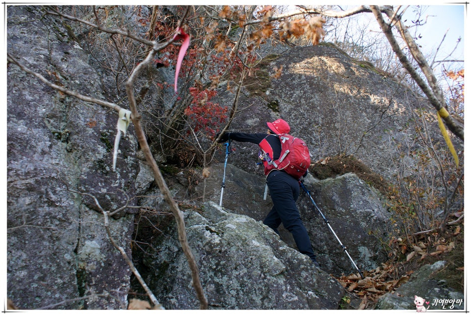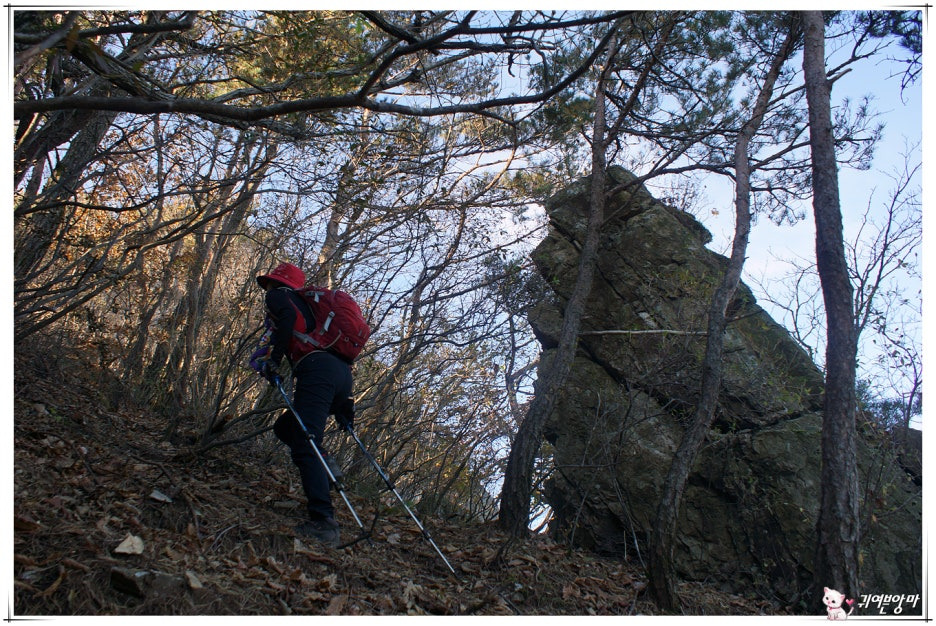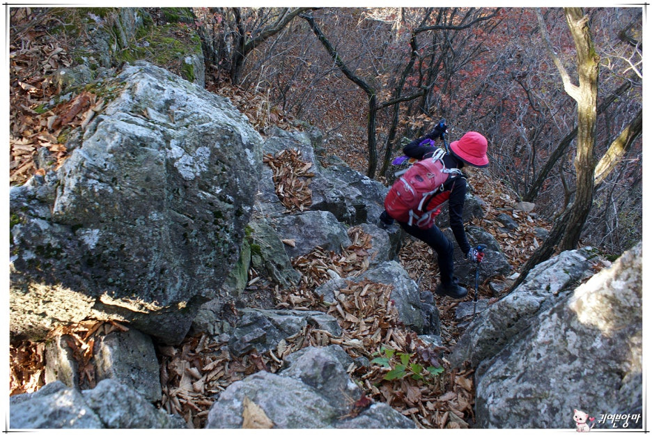 가파른 능선 오름길에 미끄러운 마사토가 깔려있어서...한결 더 조심스런 기억속의 능선 오름길입니다.