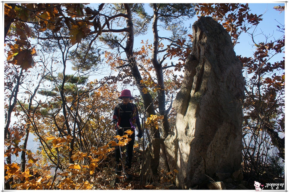등로 왼쪽에 지난번엔 모르고 지나쳤던...아주 커다란 입석바위가 눈에 들어오네요.