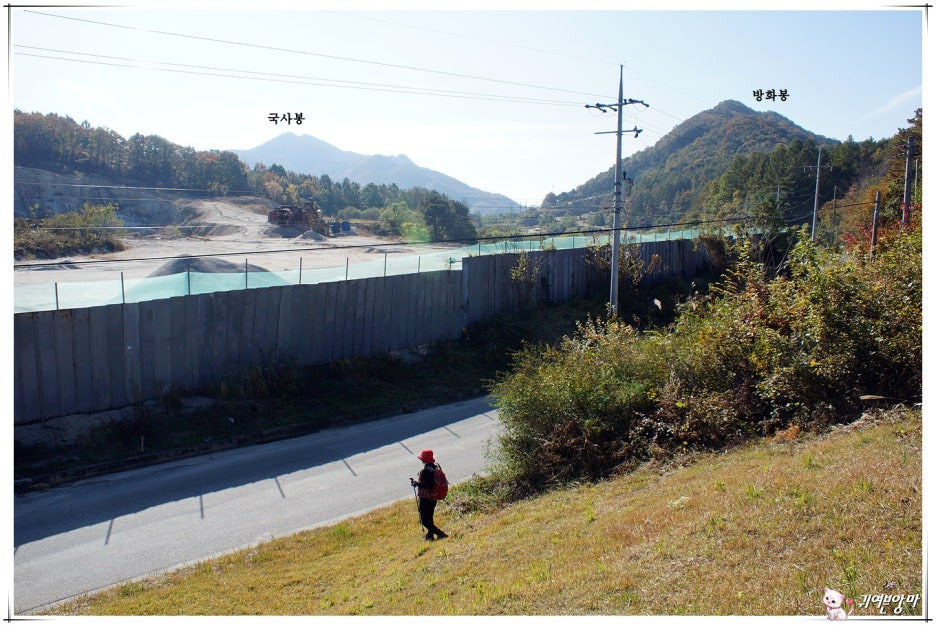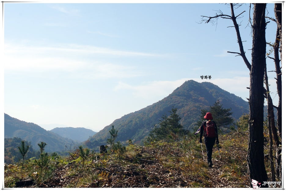 건너쪽에는 치고 올라갈 방화봉과 국사봉이 마주 보이고...걸음 가볍게 오솔길같은 등로따라 아래쪽으로 내려갔습니다.