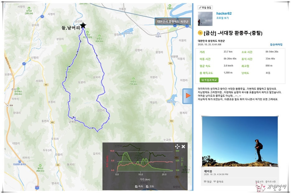 [금산] -서대장 환종주- 거리 및 고도표(중탈)