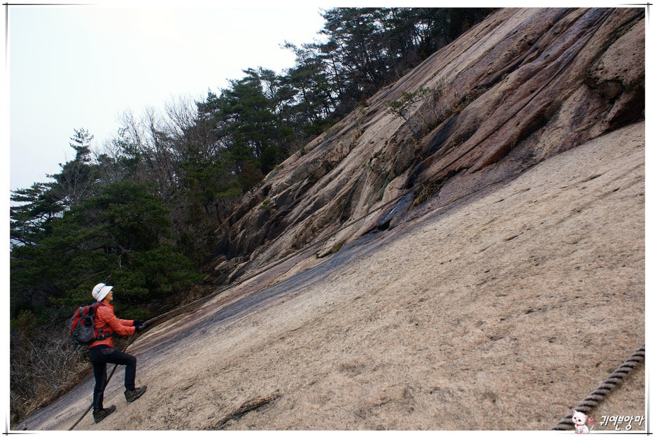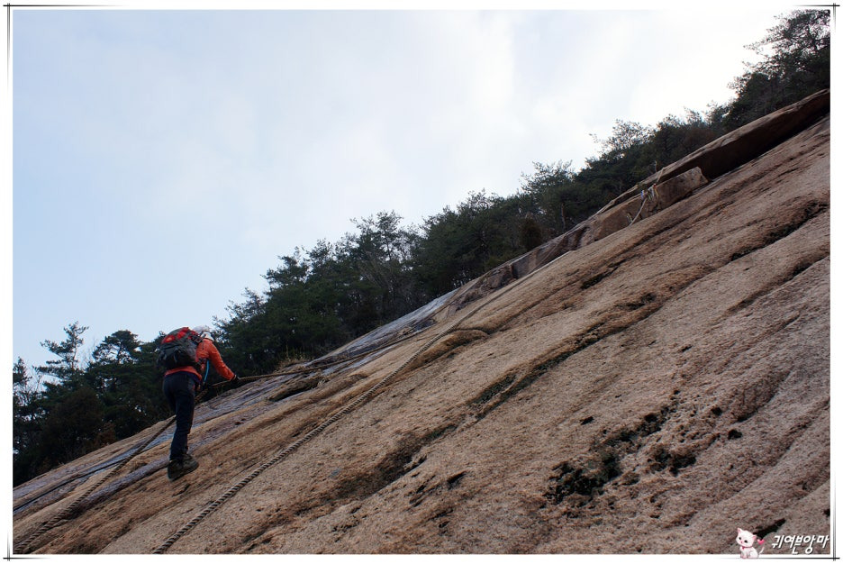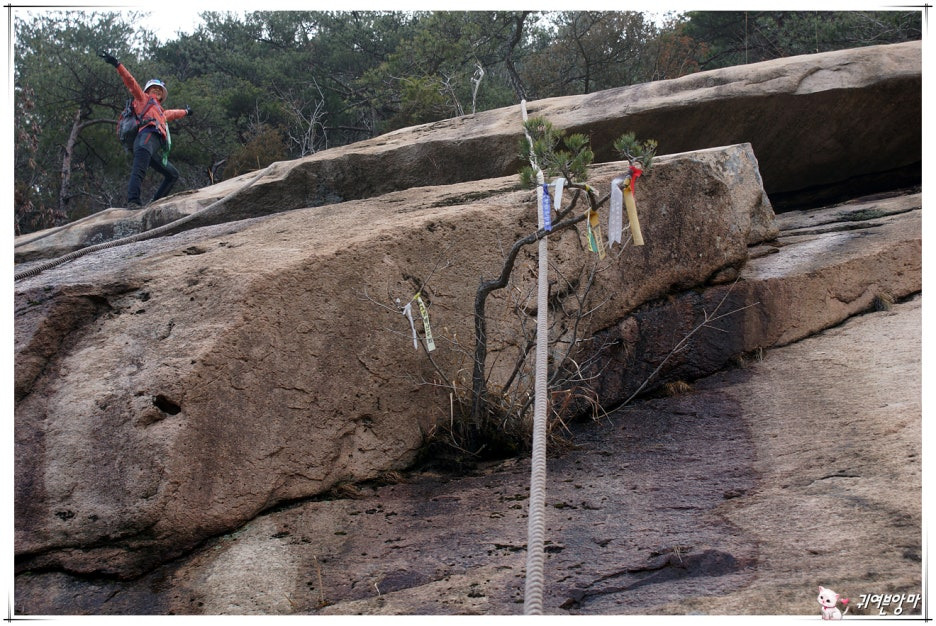 미끄럽지 않은 오름길에선...잠시 밧줄을 놓고서....^^