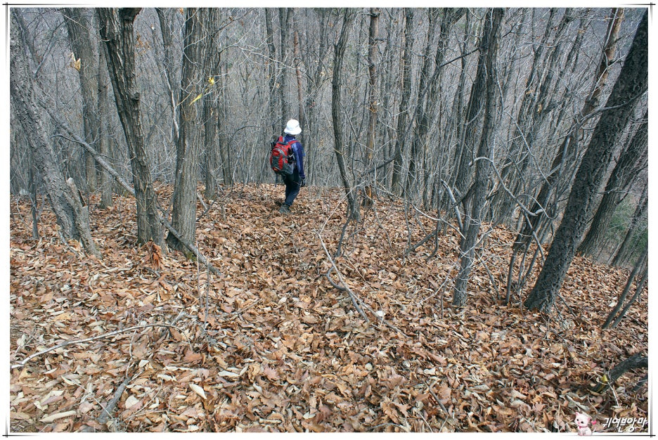 낙엽으로 미끄러운 경사진 등로를...땅만보고 한 참을 올랐더니....