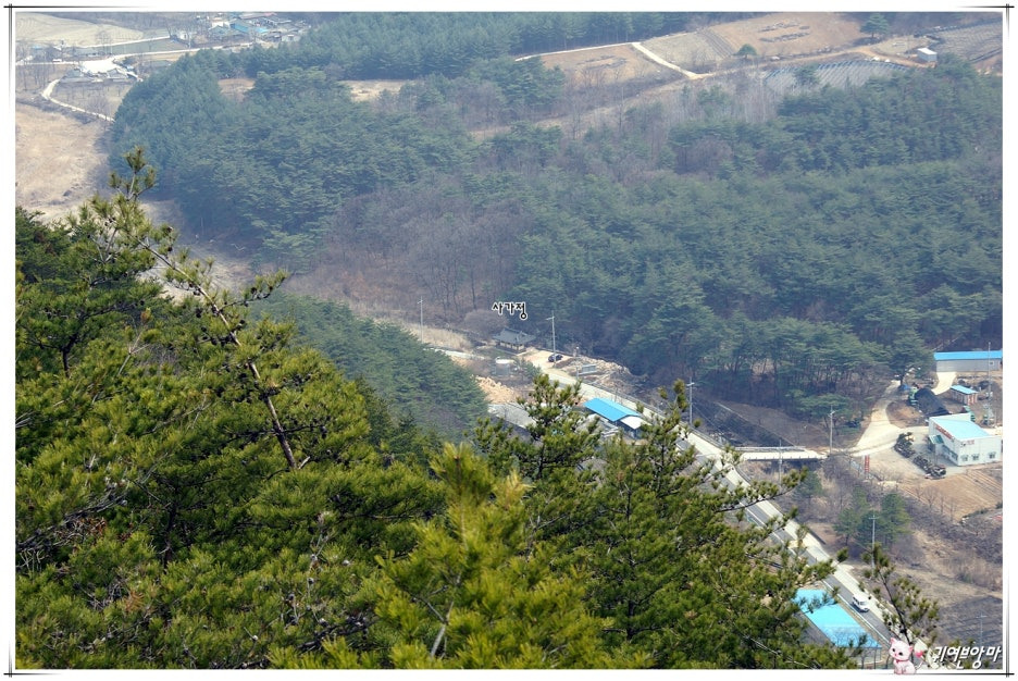 들머리 사가정 정자가 아래쪽에 내려다 보이고...그 옆 주차장엔 검둥이가 우릴 기다리고 있네요.^^