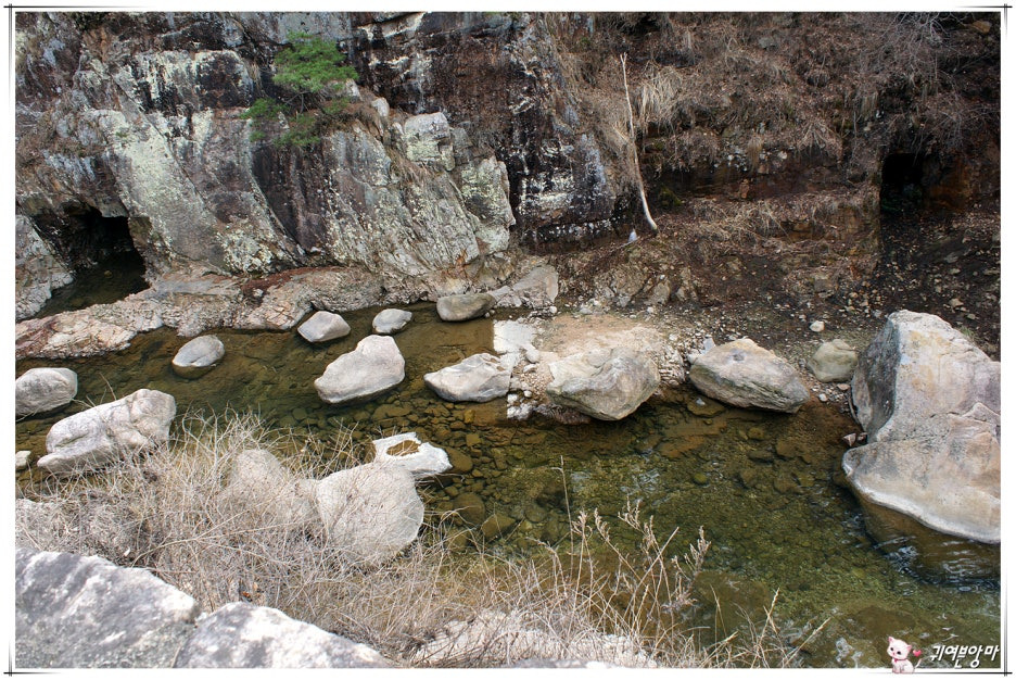 계곡 아래쪽에...커다란 두 개의 동굴이 보이네요.