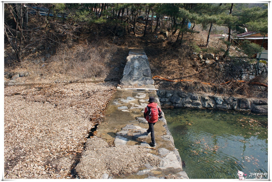 개울을 건너가야 하는데...내려서기가 넘 가파르네요.