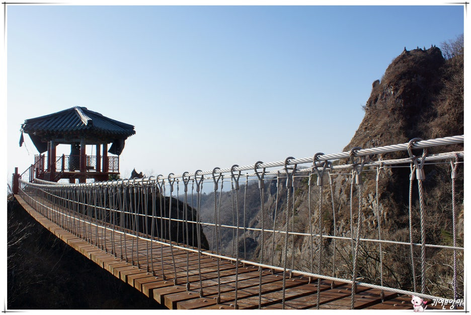 아래쪽 절벽에 붙어있는...구름다리 보이시죠.?