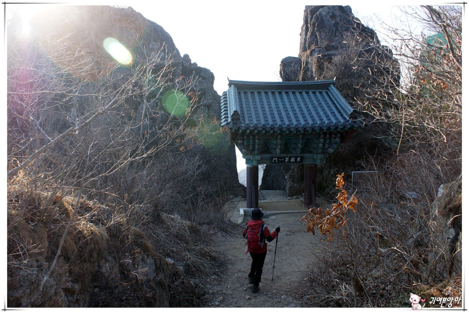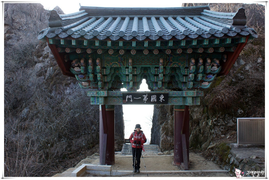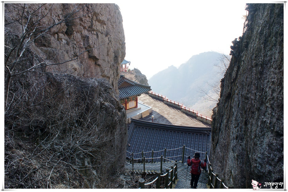 동국제일문 일주문을 지나서...양 절벽 사이 계단길따라 약사암으로 내려갔습니다.