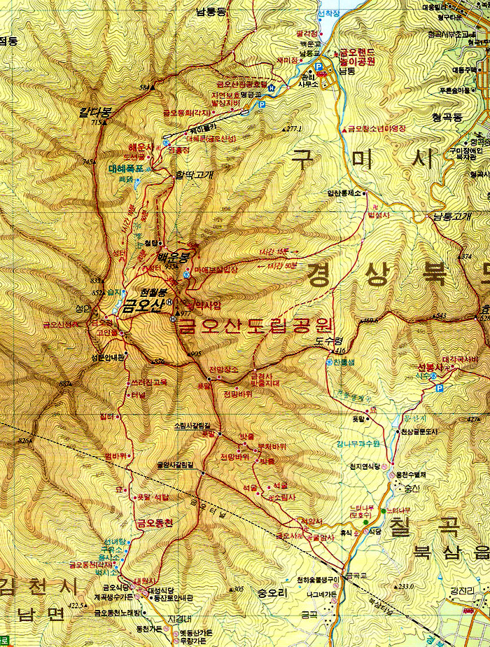 우린 왼쪽 능선따라...다시 금오동천으로 내려갔네요.