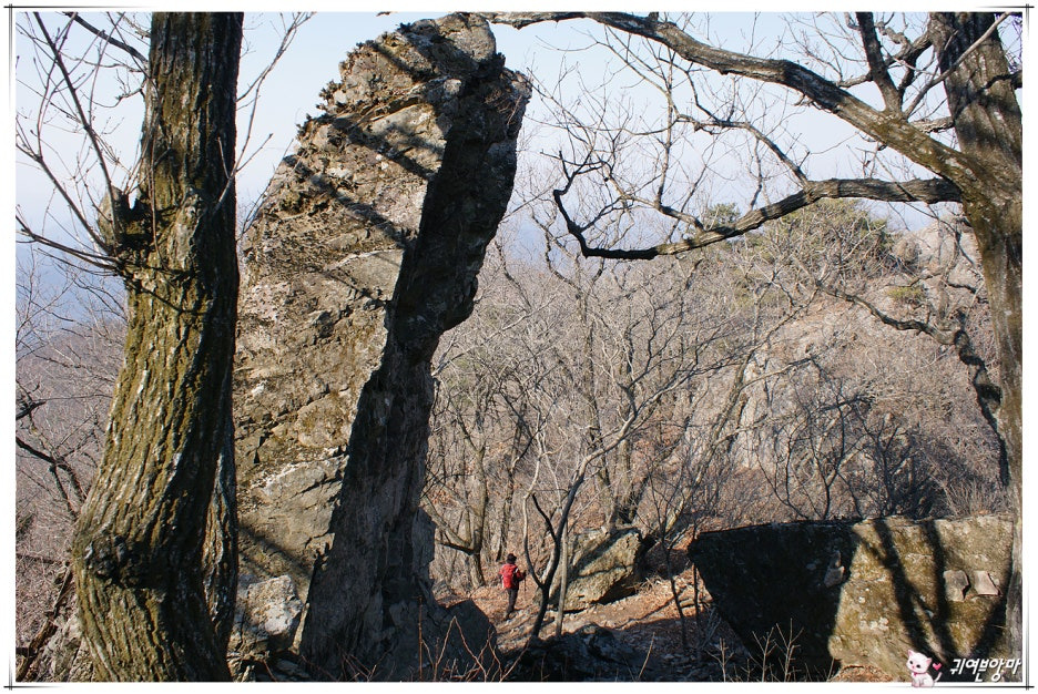 그런데, 지나가야 할 능선 위 암봉에...뭔가 보입니다.