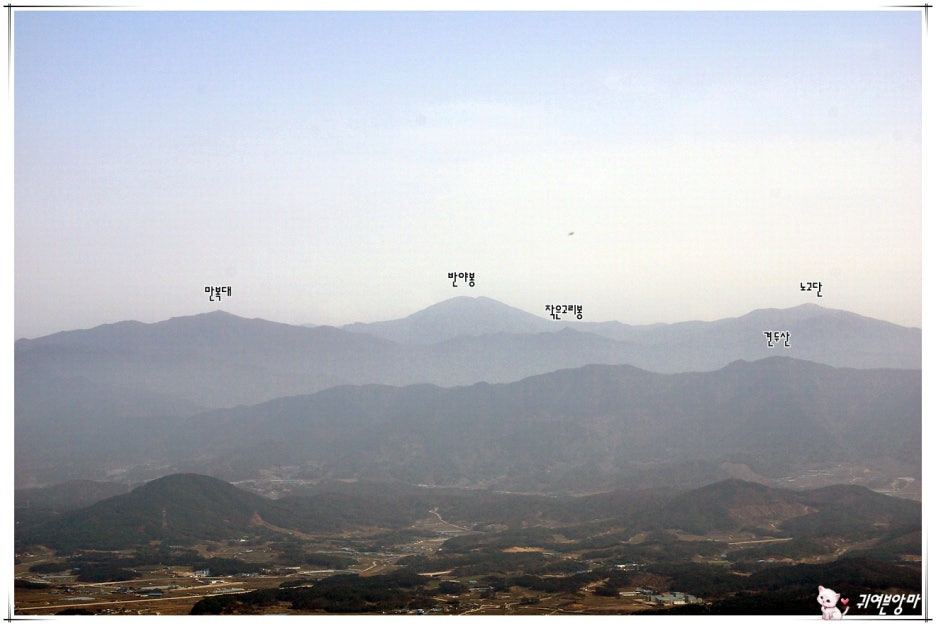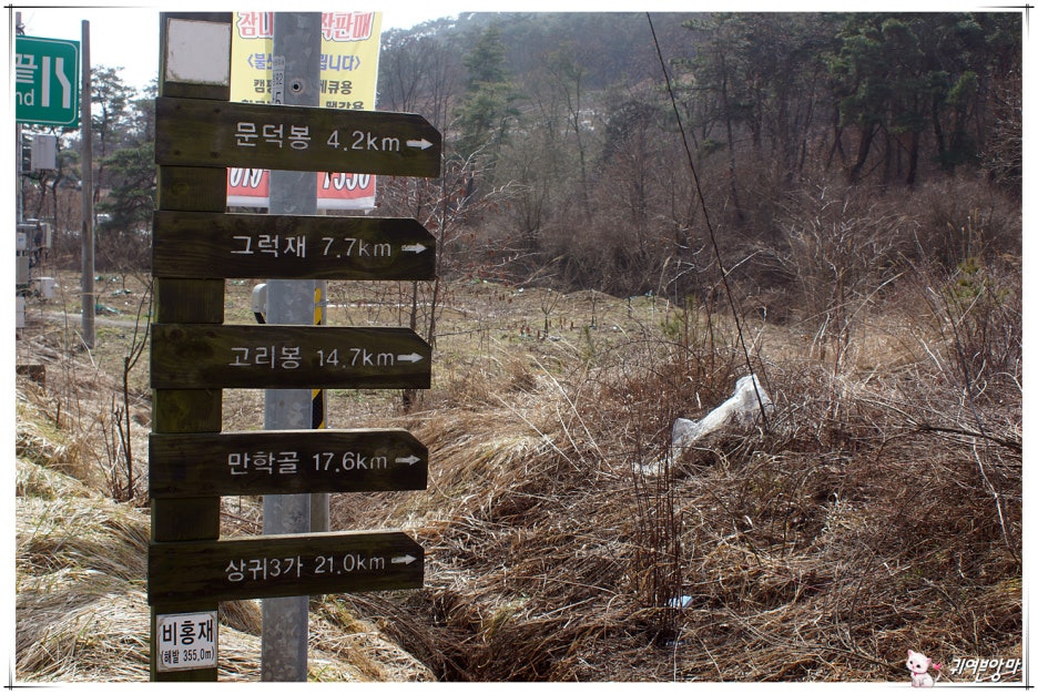 도로 건너쪽에는...이제부터 걸어가면서 만날 봉우리들 이정목도 보이네요.