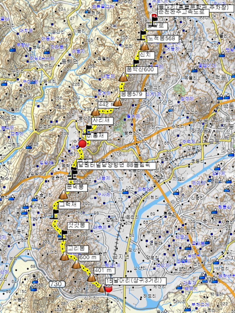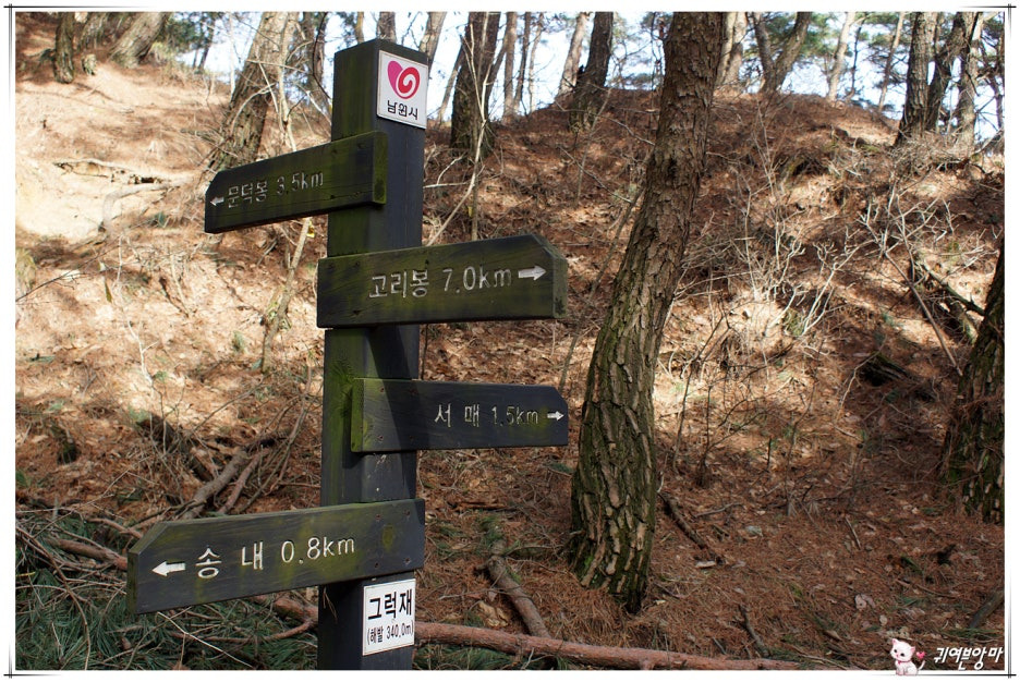 지금부터 걸어가야 할...고리봉을 지나쳐 상귀3가까지의 자세한 능선길 안내도입니다.