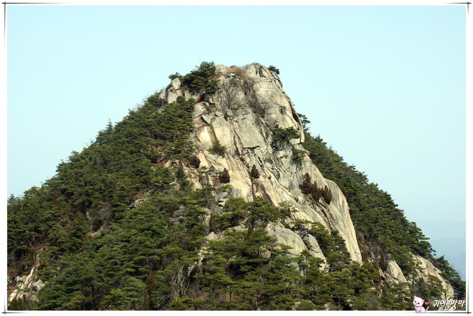 암릉길을 한동안 오르내리다가...뽀쪽하게 솟아오른 조망좋은 암봉에 올랐네요.