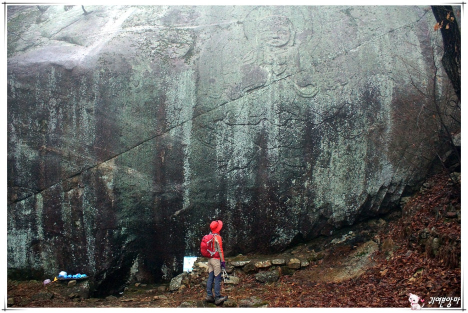 물길이 되어버린 산길을 조심스레 올라...마애불이 있는 큰바위를 만났네요.