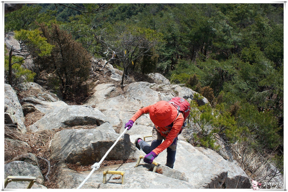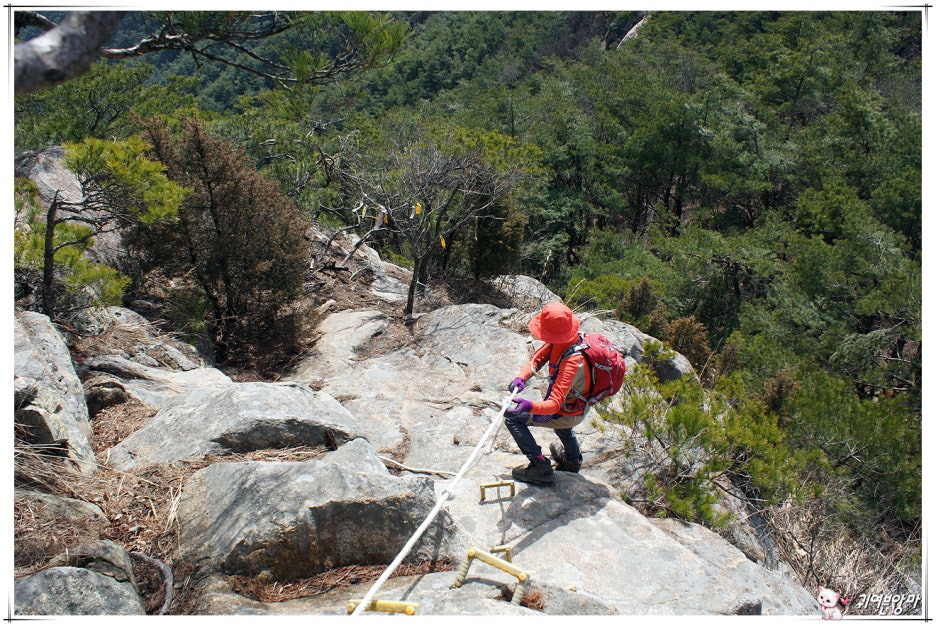 점점 거칠어지는 바윗길...매여놓은 밧줄을 꼭 잡고서....^^