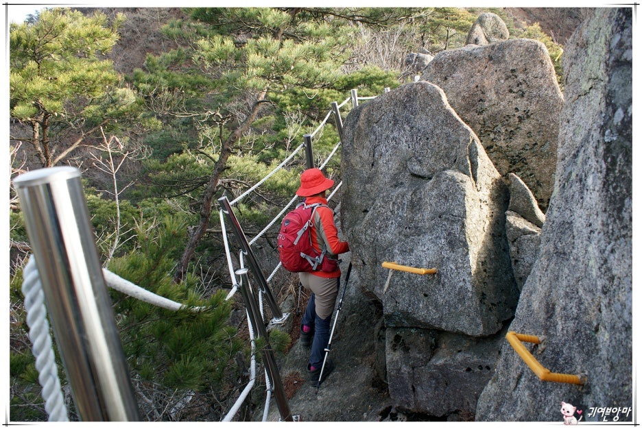 급한 오르내림 길이지만...밧줄과 손잡이가 설치되어 있어서 크게 어렵진 않습니다.