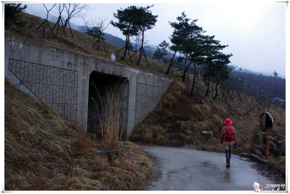 문학관 뒤쪽 임도를 따라 잠시 올라...고속도로 굴다리 아래를 지나고....